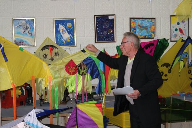 Руководитель кружка СЮТ «Изготовление воздушных змеев», представил модели змеев, которые принимали участие в городских, областных и Всеукраинских соревнованиях.