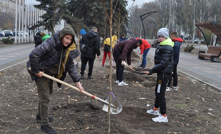 На аллее по бульвару Машиностроителей, возле автостанции Краматорск, в рамках планового озеленения работники КП УРСАС вместе со спортсменами секции бокса детско-юношеской спортивной школы № 3 высадили деревья.