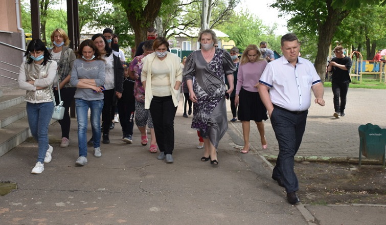 Во время общения с родителями, заместитель городского головы Краматорска Елена Катальникова обратила внимание на разницу между небольшим помещением школы в Новоселовке и современной отремонтированной школой № 18.