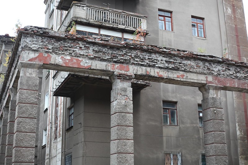 Четырехэтажный дом и примыкающая к нему семиэтажка по адресу ул. Дружбы, 10, были введены в эксплуатацию еще в 1937 году. Спроектированы они был немецкими архитекторами и построены для специалистов НКМЗ. К дому пристроена колоннада, которая в свое время была архитектурным украшением. Спустя более чем 90 лет со времен строительства, колонны разрушаются и несут опасность, как для жильцов дома, так и проходящих мимо людей, а также для водителей, которые паркуют возле дома транспортные средства,-сообщает "Восточный проект".