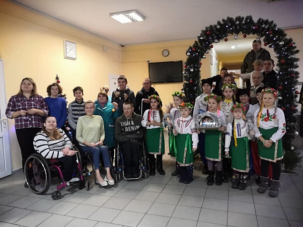10 января ученики Краматорской ООШ 15, воспитанники кружка "Сказка как эпический жанр" и участники школьного театра "Радость" поздравили слушателей межрегионального центра реабилитации инвалидов с Новым годом и Рождеством Христовым.