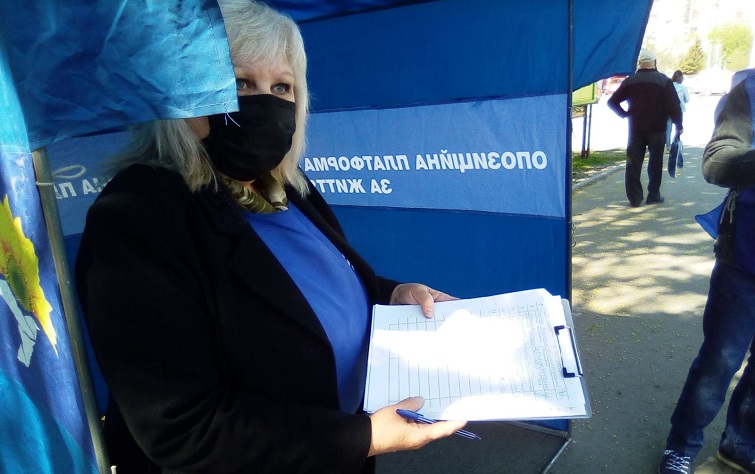 В палатках, которые установила ОП-ЗЖ в разных районах города, также раздается информационный бюллетень и ведется сбор подписей еще под одним - провести выборы в местные советы на всей подконтрольной Украине территории Донецкой области.