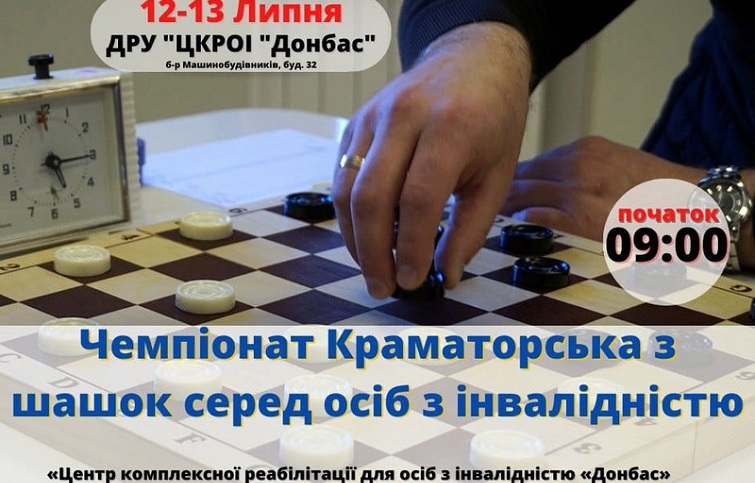 12 и 13 июля в Краматорске, в центре реабилитации "Донбасс" будет проходить чемпионат города по шашкам среди людей с инвалидностью.