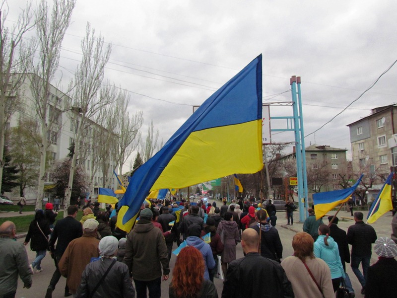 Жители и гости города 17 апреля прошлись центральными улицами Краматорска, скандируя патриотические лозунги.