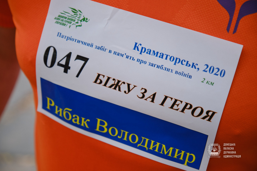 Как сообщает пресс-служба Донецкой областной администрации, участники пробежали два символических километра. У каждого на футболке был специальный номерок с фамилией погибшего защитника.
