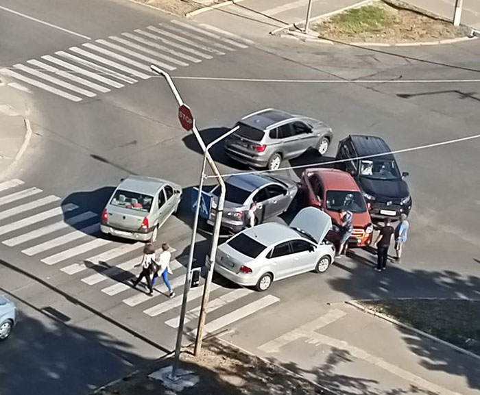 Утро 1 сентября стало несчастливым сразу для 4 автомобилистов Краматорска, которые устроили дорожно-транспортное происшествие на пересечении улиц Дворцовой и М. Примаченко. О том, что сейчас происходит на перекрестке, можно судить по фото Ирины Егоркиной.