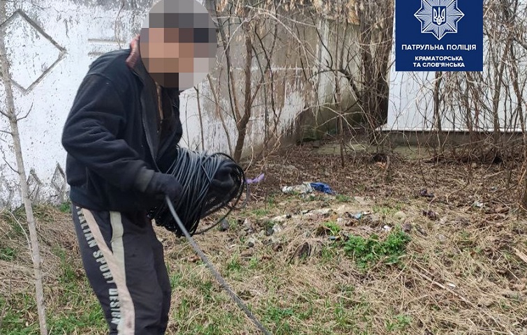 Утром 9 марта патрульные получили вызов о подозрительной личности. Женщина, которая позвонила в полицию, сообщила, что напротив ее дома по улице Румянцева в Краматорске неизвестный вытягивает кабель.