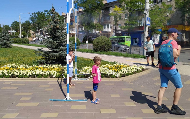 Термометры в Краматорске зашкаливают, а так хочется свежести. Сотрудники предприятия Краматорский водоканал решили установить в центре города «водяную рамку» и теперь жители города могут при желании освежиться. Сотрудники предприятия предусмотрительно оставили расстояние для тех, кто освежаться не желает.