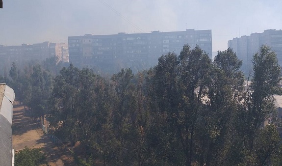 В Краматорске в микрорайоне Лазурный больше суток горит и дымится трава, чем существенно отравляет жизнь граждан. Люди в 30-градусную жару вынуждены жить с закрытыми окнами.