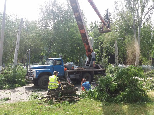 В Краматорске в рамках реконструкции б. Машиностроителей убирают старые тополя