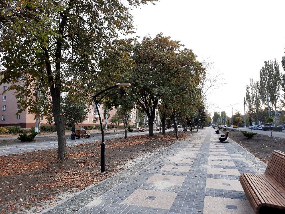 В Краматорске в рамках реконструкции бульвара Машиностроителей устанавливают новые фонари