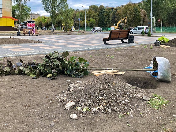 В Краматорске в рамках реконструкции улицы б. Машиностроителей высаживают новые деревья