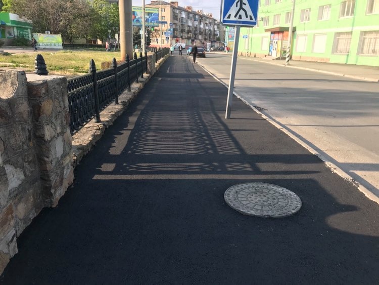 В Старом городе на тротуаре по ул. Северской уже частично проложено асфальтное покрытие.