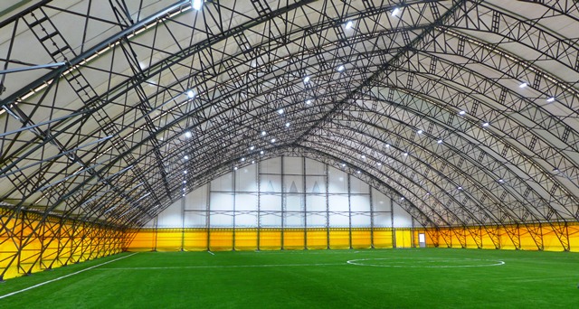 Общая стоимость проекта составляет 18 млн. грн. Это первое крытое поле в нашем регионе. Его размеры составляют 65 на 44 метра, а высота сооружения - 13 метров. Интересно, что ближайшее подобное поле находится в Днепре. Оно вдвое меньше в размерах по сравнению с краматорским.