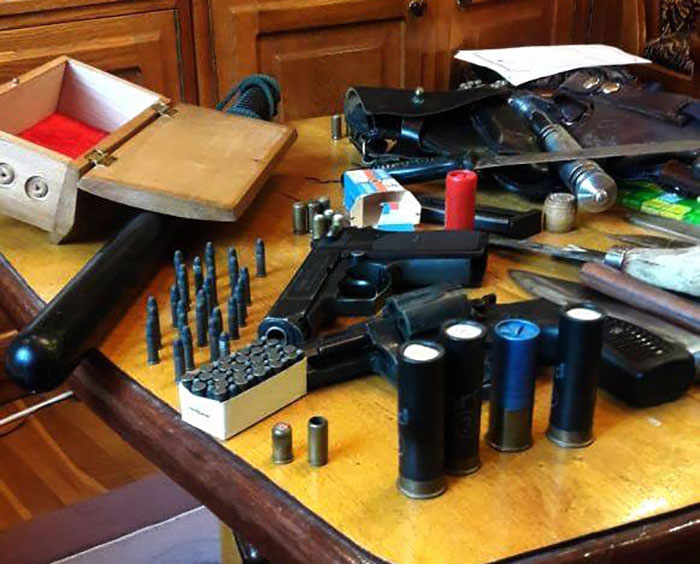 В ходе проведенных обысков обнаружен обрез охотничьего ружья 16 калибра, газовый пистолет и газовый револьвер калибра 9 мм с признаками переделки под боевое оружие, 76 патронов калибра 5.6 мм, 8 патронов травматического действия, вещество зеленого цвета со специфическим запахом марихуаны. Выявлены также кодеиносодержащие лекарственные препараты, которые незаконным образом реализовывались без рекомендаций врача, денежные средства в сумме 13500 гривен с фискальными чеками и записями, подтверждающими незаконный сбыт указанных препаратов.