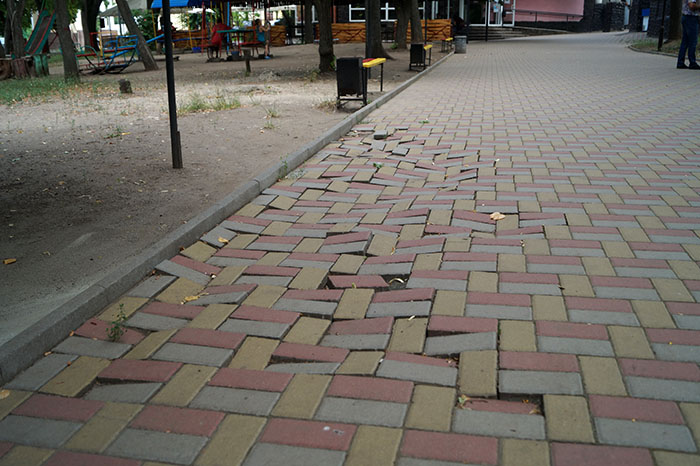 В краматорском парке им. Пушкина начала рассыпаться тротуарная плитка