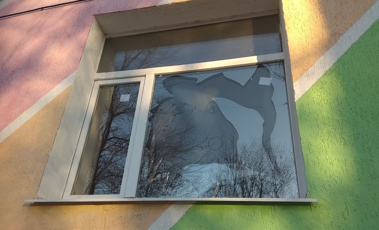 В образовательном учреждении Краматорска повадились бить стекла на пластиковых окнах