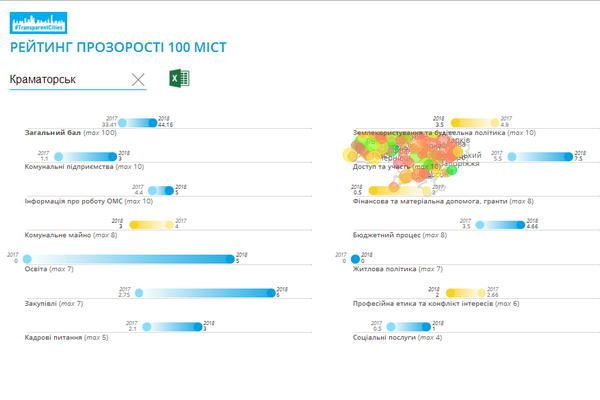 Несмотря на то, что в 2018 году показатель прозрачности составляет 44,16%, против 33,41% 2017 года, Краматорск опустился на одну позицию в рейтинге.