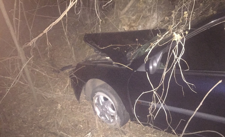 Водитель автомобиля не справился с управлением и совершил наезд на препятствие.