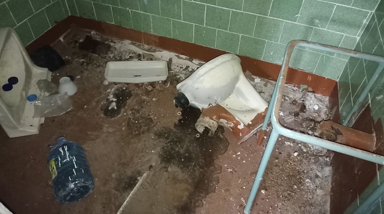 Теперь же охотники за металлом переключились в спальный корпус, который также, как и хозяйственная постройка никак вообще не охраняется. Хотя рядом в нескольких метрах и находится ГБР, это никак не останавливает воришек. Окна в спальном корпусе местами разбиты и открыты, а некоторые двери закрываются на щеколду изнутри. Учитывая, что, в помещение скорее всего проникают через окна, то и двери открыть не составляет труда.