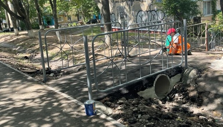 Сегодня КП УРСАС завершает обустройство пешеходных дорожек через поверхностный водоотвод к домам 18, 20, 24 по ул. Дворцовой. В предприятии надеются, что передвижение на данном участке станет комфортным при любых погодных условиях.