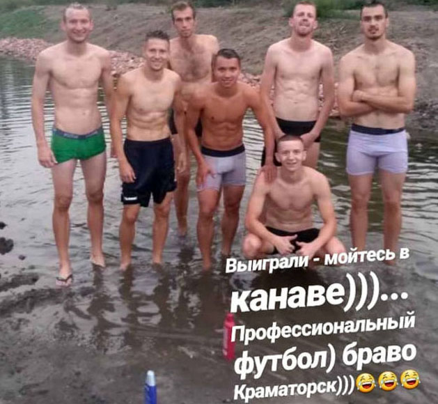 Сами футболисты с юмором отнеслись к подобной ситуации, опубликовав фото с подписью: «Выиграли — мойтесь в канаве)))... Профессиональный футбол) браво Краматорск)))».