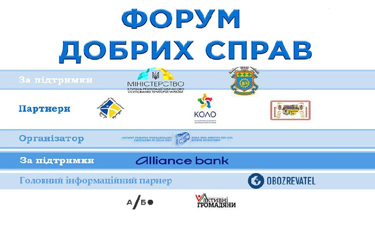 Організатором «Форума Добрих Справ» виступає Інститут розвитку громадянського суспільства імені Голди Меїр за підтримки «Банк Альянс».