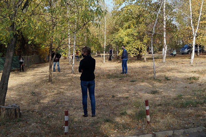 На фото: очередь на прием к врачу 13 октября на заднем дворе 3-й поликлиники. Люди соблюдают безопасную дистанцию.