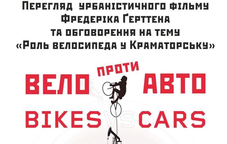 Общественный просмотр фильма "Bikes vs Cars" с последующим обсуждением роли велосипеда в Краматорске.