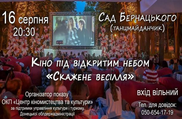 Показ под открытым небом начнется в 20:30, на танцплощадке Сада Бернацкого. Вход свободный.телефон для справок: (050) 654-17-19.