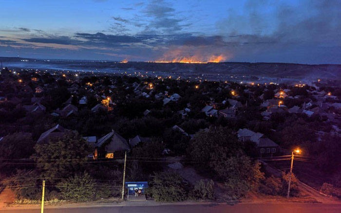 Вечером 27 августа жители Краматорска стали публиковать в Facebook апокалиптические фото полевых пожаров между Краматорском и Славянском. По информации авторов фотографий, пожар наблюдается между Краматорском и Славянском.