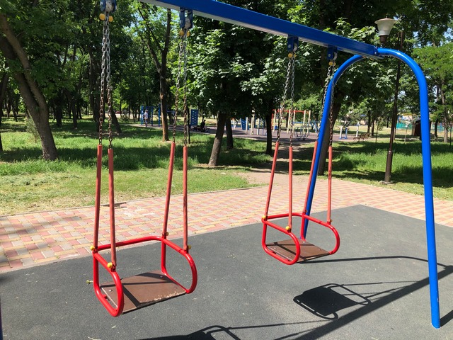 Многие качелей сломаны, поцарапаны и разрисованы. Также на площадках установлены теннисные столы которые имеют опасные штыри (потому что на них нет доски, которую должны были установить вместе со столом).