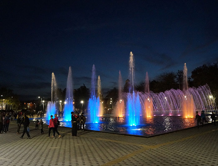 Но, конечно, наиболее зрелищно отреставрированный Сквер выглядит в темное время суток. Здесь уже много публики.