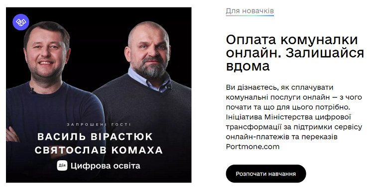 Министерство цифровой трансформации Украины совместно с сервисом онлайн-платежей и переводов Portmone.com презентовали образовательный сериал, цель которого – научить граждан, особенно пожилых людей, как оплачивать счета, не выходя из дома. Участие в образовательном сериале принял заслуженный мастер спорта Украины Василий Вирастюк.