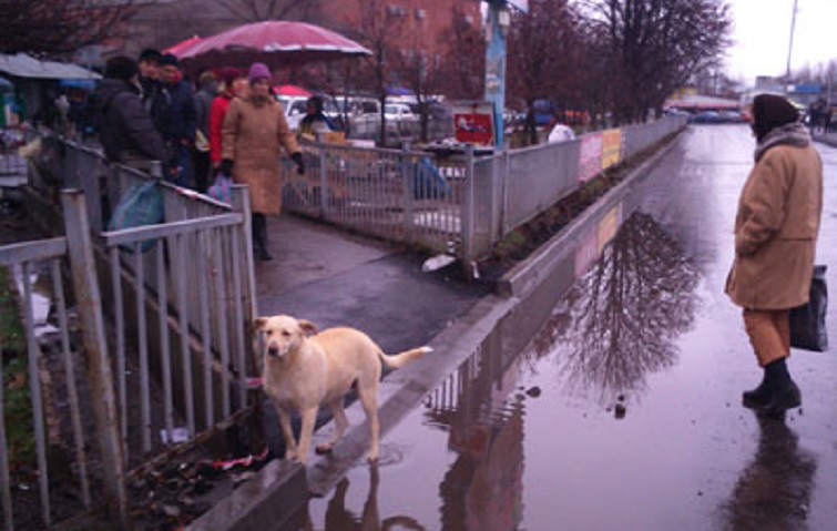 Краматорчане вынуждены искать брод, чтобы перейти отремонтированную улицу