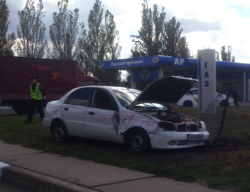 В Краматорске сбитый “Ланос” врезался в ограждение АЗС