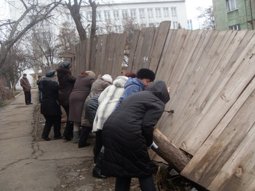 Стройка на Дворцовой: жители уже 9-й час мерзнут перед входом на строительный участок