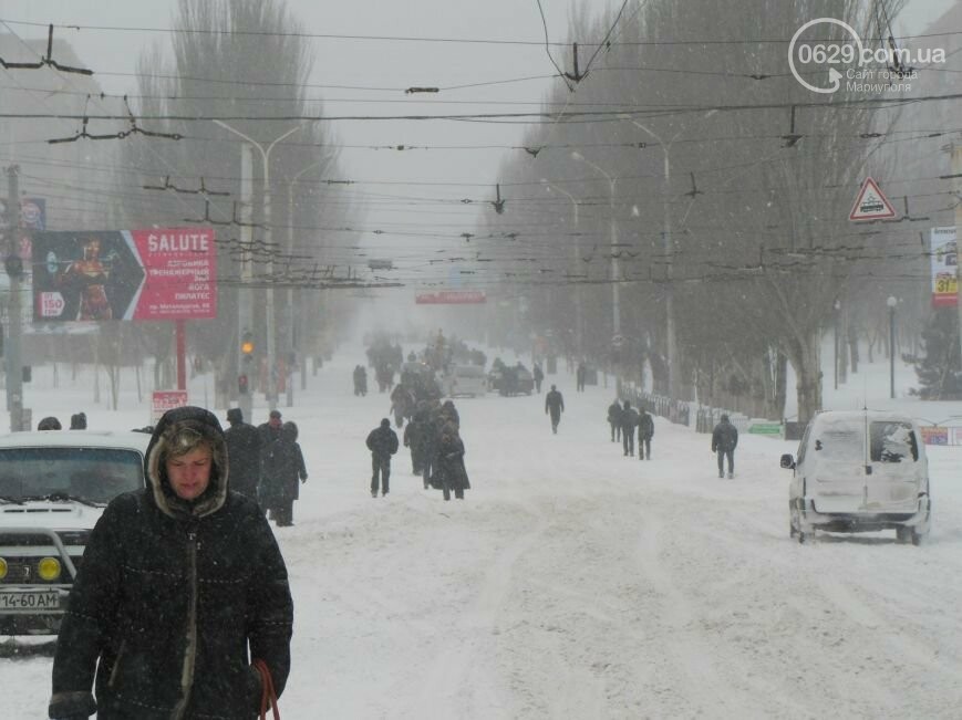 Снегопад в Мариуполе: транспортный коллапс, неработающие магазины, пустые школы