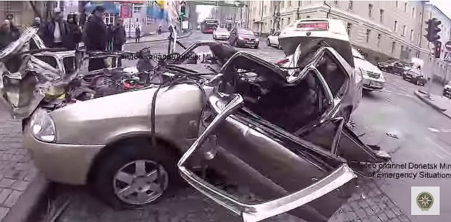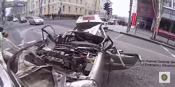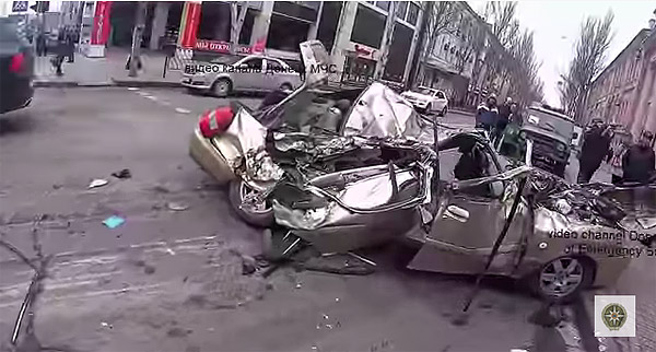 30 января 2015 года в Донецке 30-тонная гаубица боевиков раздавила легковушку, припаркованную на обочине. ДТП произошло в Куйбышевском районе.