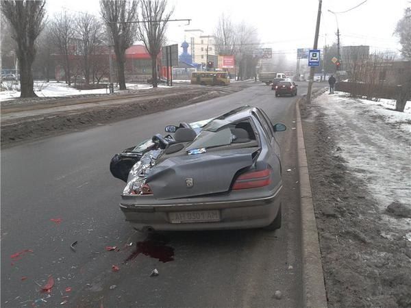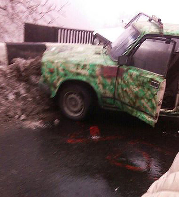 По словам горожан, виновником аварии стал водитель «Жигулей», кузов которых выкрашен в серо-зеленый камуфляж. В своих сообщениях люди намекают, что на автомобилях с закамуфлированным кузовом в Донецке передвигаются только боевики «ДНР».