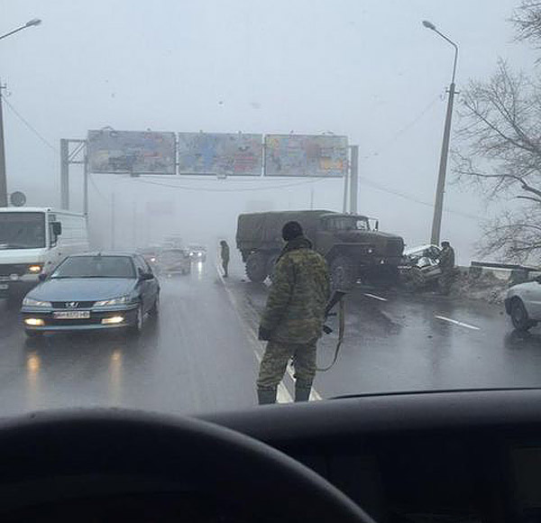 23 Января 2015 года в Донецке боевики устроили по меньшей мере еще три аварии на мосту между Текстильщиком и Петровкой. По словам очевидцев, причина аварий самая банальная - грубое нарушение правил дорожного движения водителями военной техники боевиков.