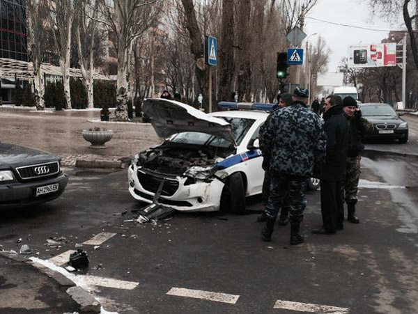 11 февраля 2015 года в Донецкетерористы за рулем, ранее угнанной и перекрашенной, милицейской машины врезались в автомобиль мирного жителя. По словам очевидцев, на место сразу же прибыли вооруженные люди и представители «комендатуры ДНР». Фотография уже вызвала бурную реакцию среди пользователей соцсетей и интернет-сообществ Донецка. Пользователи иронизируют, на тему того, что «полицаи ДНР» выйдут сухими из воды, ведь, по сути, в Донецке сейчас анархия.