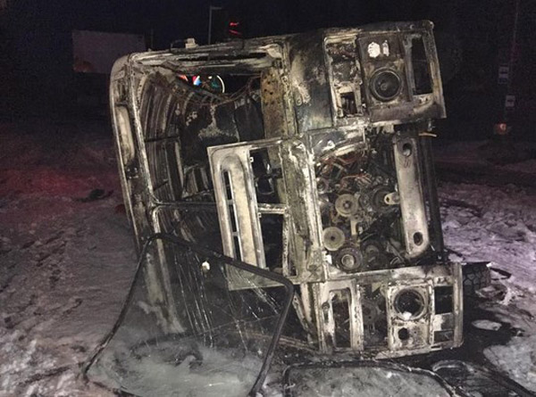15 января 2015 года в Донецке внедорожник с боевиками протаранил автобус. После ДТП машины загорелись. Сообщается, что в автобусе ехали металлурги из предприятия «Укрсплава». Причиной аварии стало то, что боевики из батальона «Кальмиус» на большой скорости выехали на перекресток на красный свет.