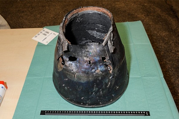 В отчете рассказывается, что следователи получили образец ракеты "Бук", который они разобрали, чтобы понять из чего она состоит. В публикации также представлена фотография детали, которая названа соплом ракеты "Бук", найденной на месте падения самолета.