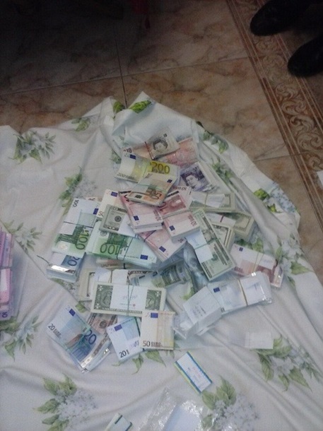 На фото, которые опубликовали силовики, видно пачки евро, долларов и гривен.