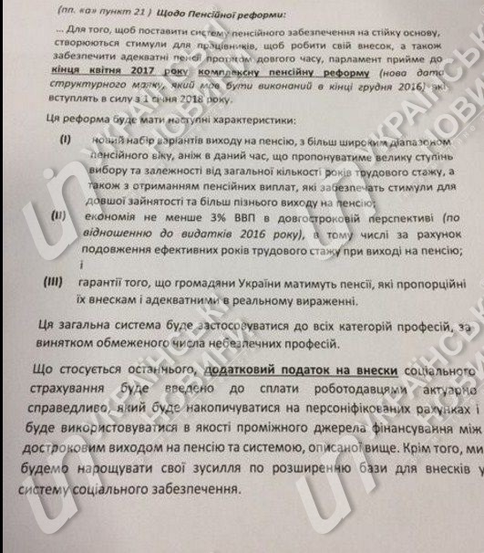 Согласно проекту меморандума парламент должен принять пенсионную реформу до конца апреля, а вступить в силу она должна с 2018 года.