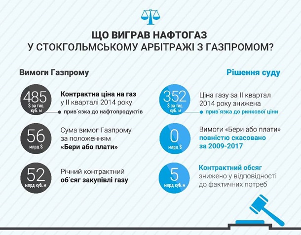Кроме того, в Нафтогазе сообщили, что арбитраж полностью отклонил требования Газпрома относительно положения "бери или плати" на 56 млрд долл. в 2012-2017 годах.