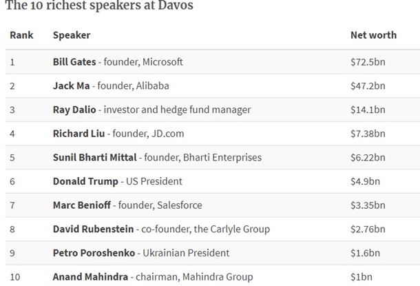 Президент Дональд Трамп станет шестым самым богатым спикером на Давосском форуме, в то время как президент Украины Петр Порошенко занял девятое место в числе самых богатых его участников.