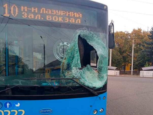 Соцмережі: у Краматорську автомобільне колесо пробило лобове скло тролейбуса