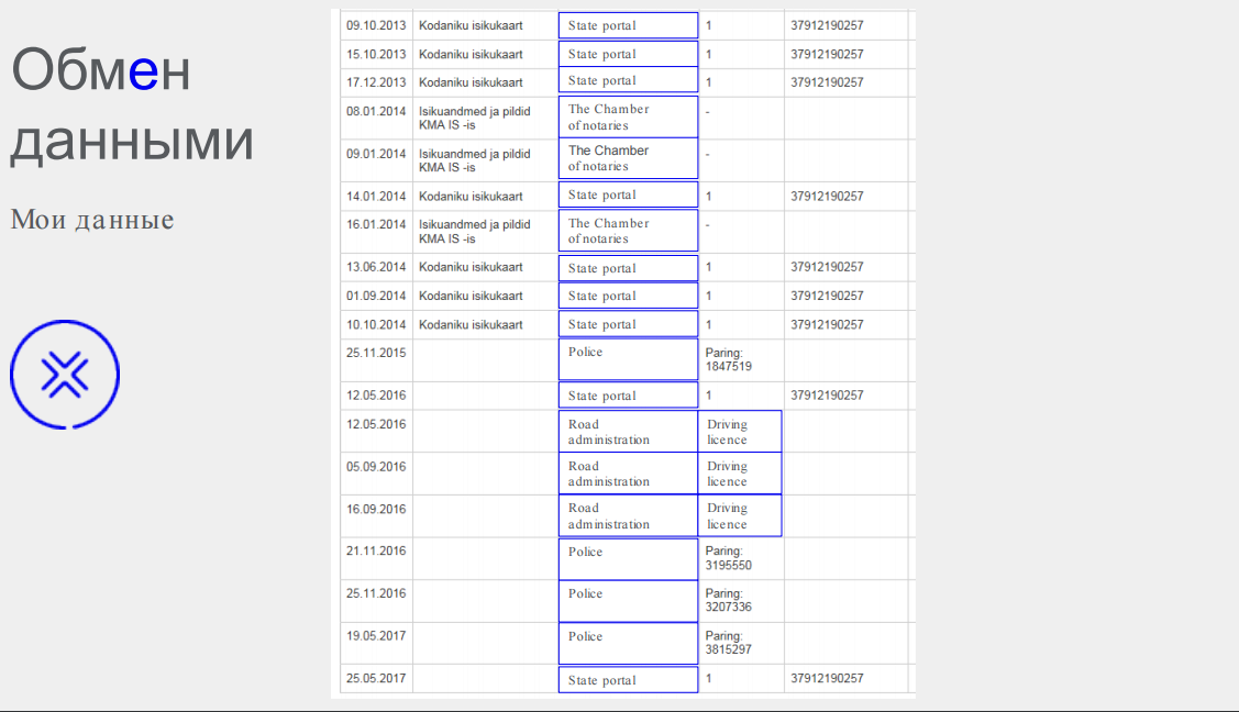 Благодаря системе X-Road каждый человек, заходя в свой личный кабинет может увидеть, кто, когда и зачем запрашивал его данные. И если человек подозревает, что какой-то полицейский или нотариус просматривал данные без существенных причин, он может обратиться в независимую инспекцию по защите персональных данных и уточнить этот момент.